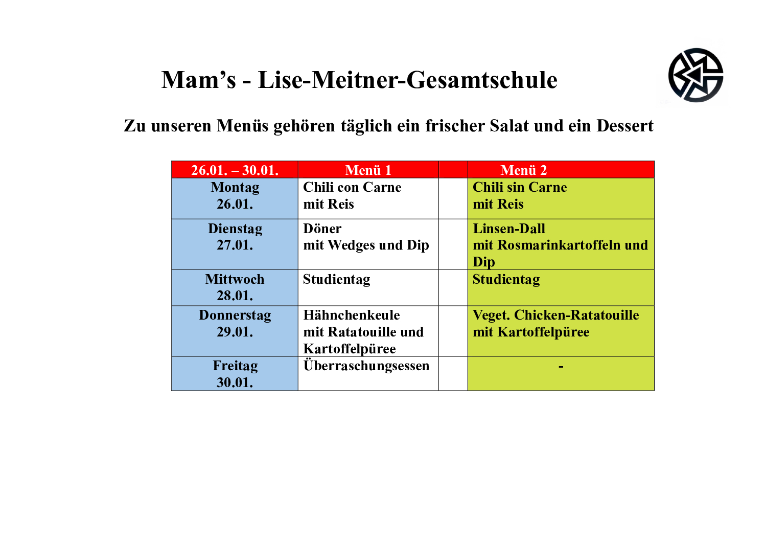 Der aktuelle Mensaplan unserer Schulmensa