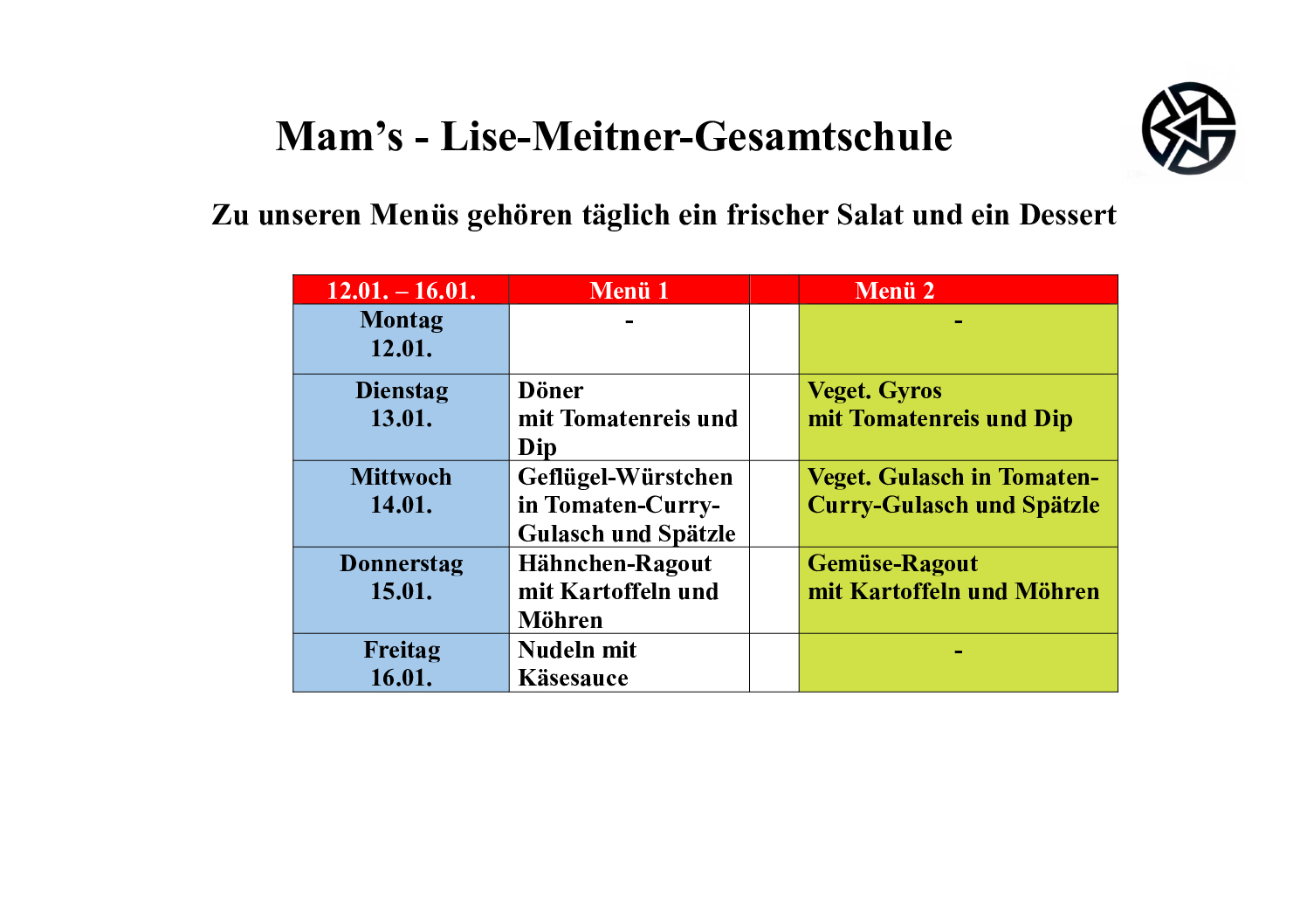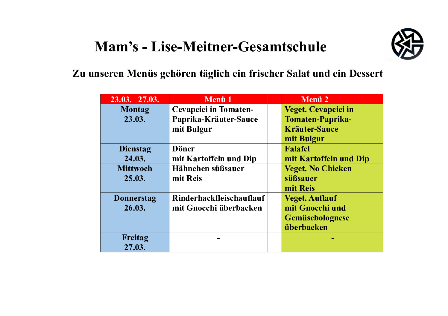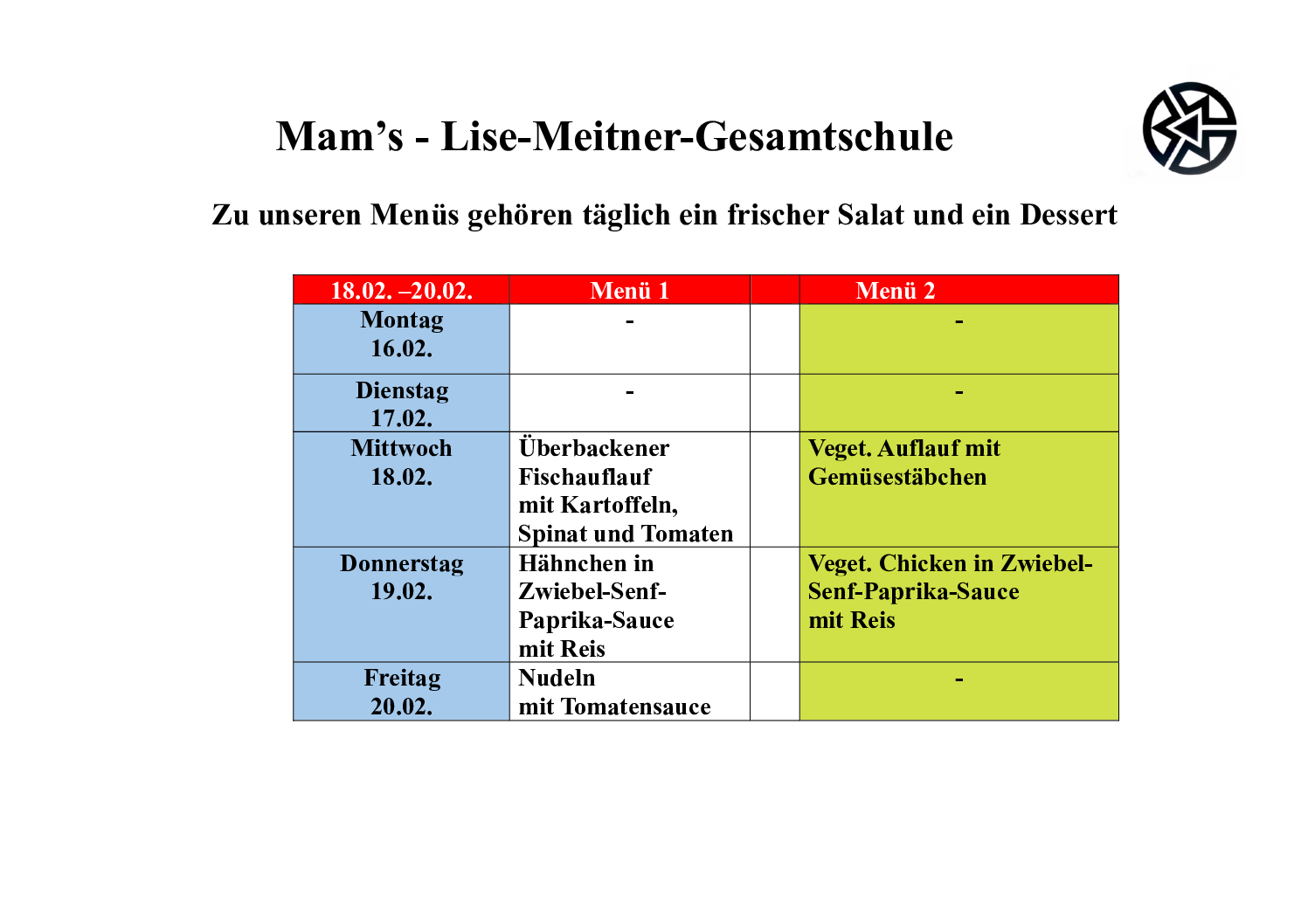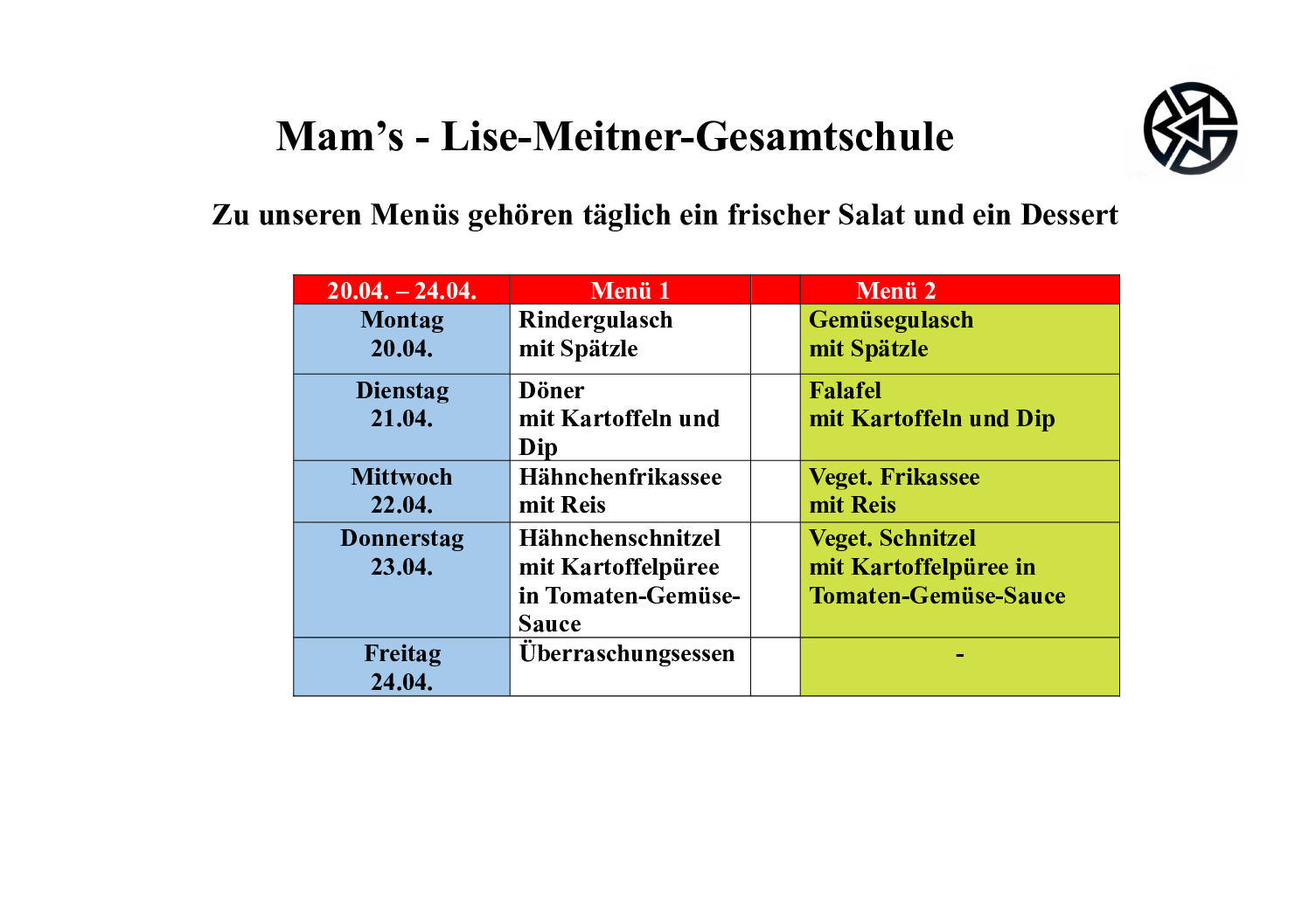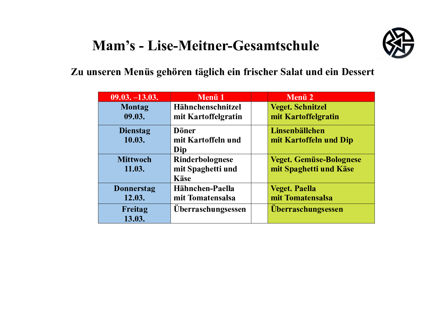 Der aktuelle Mensaplan unserer Schulmensa
